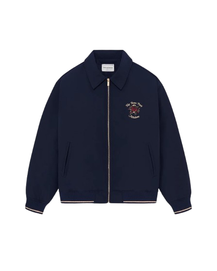 Cette veste bombers rembourrée bleu marine en coton mélangé est ornée d’une broderie Slogan Rose sur la poitrine et au dos. Entièrement doublée, elle présente une fermeture zippée, des finitions en bord-côte sur le bas de corps et les manches, un col chemise, deux poches passepoilées et une poche intérieure passepoilée.