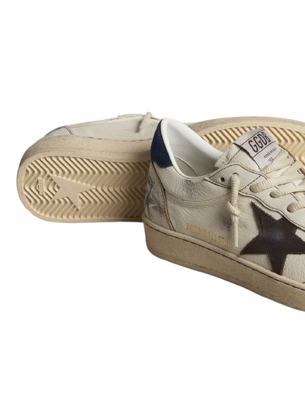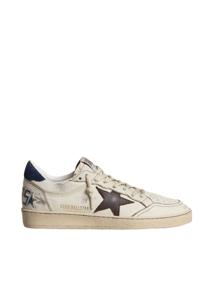 Rêvez des années 1980. Nos sneakers Ball Star font référence à l’esprit des universités américaines, entre un tir au panier et un tour en skateboard. Comme ce modèle réalisé en cuir nappa blanc, qui se distingue par une étoile en cuir noir et par un contrefort en daim bleu. Les lacets blanc cassé et l’inscription Sneakers sur le talon, écrite dans une police « métal » bleue, apportent la touche finale.