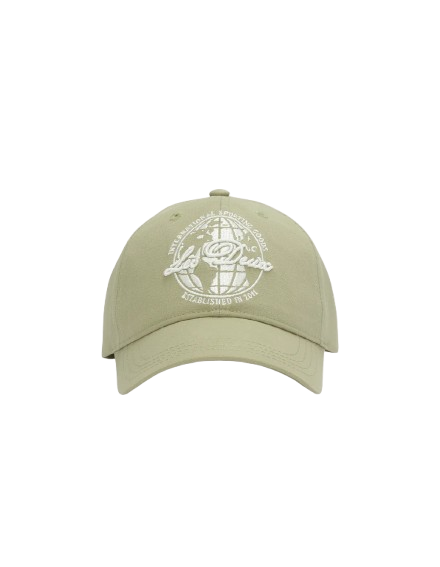 Dad cap confectionnée en coton lavé au sable pour une sensation douce et un aspect légèrement usé. Elle présente un logo globe brodé en contraste sur le devant et une sangle arrière ajustable.